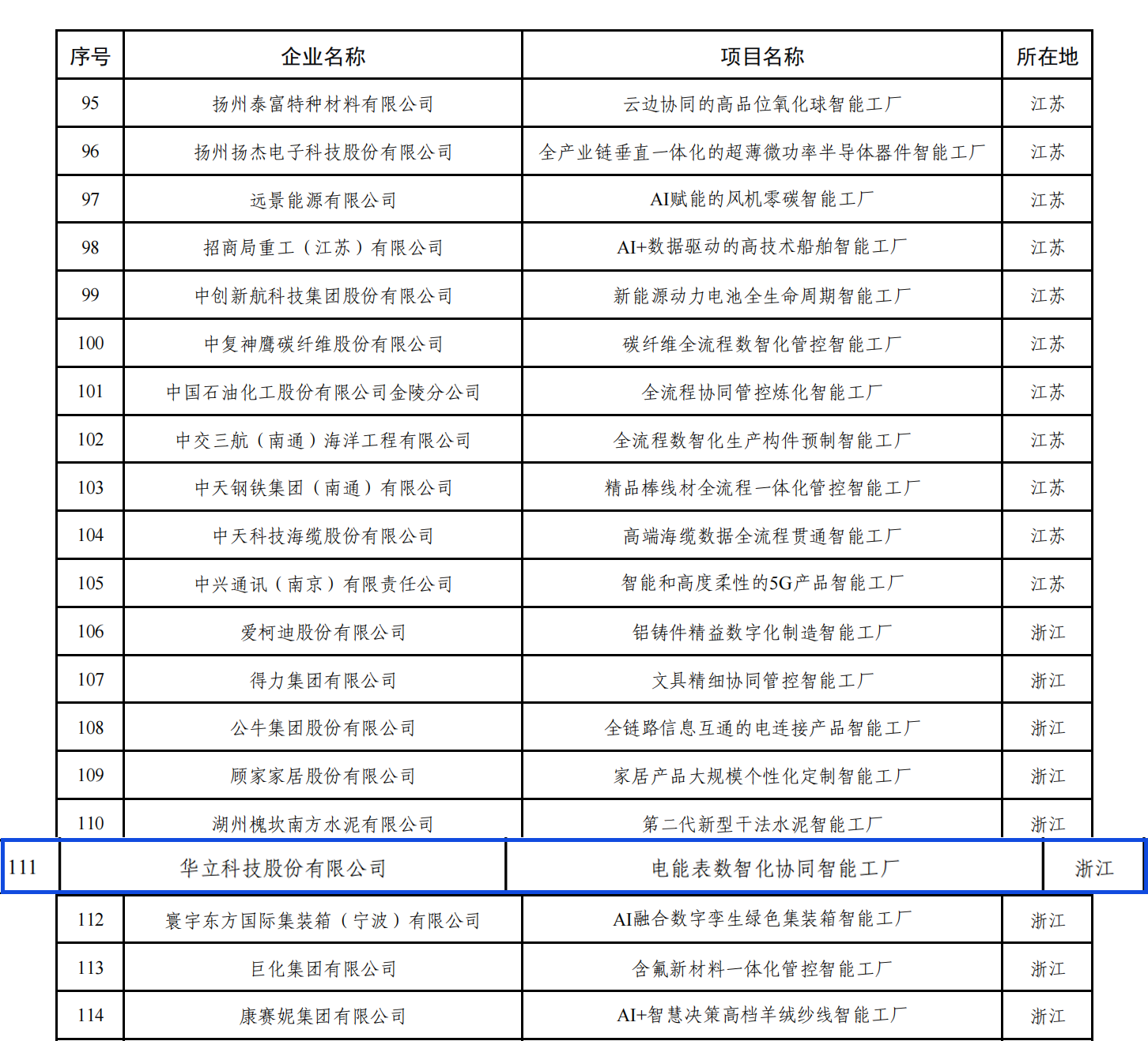 9月4日—11日,國家工信部公示了《2025年度卓越級(jí)智能工廠項(xiàng)目公示名單》,華立科技電能表數(shù)智化協(xié)同智能工廠成功入選并通過公示。