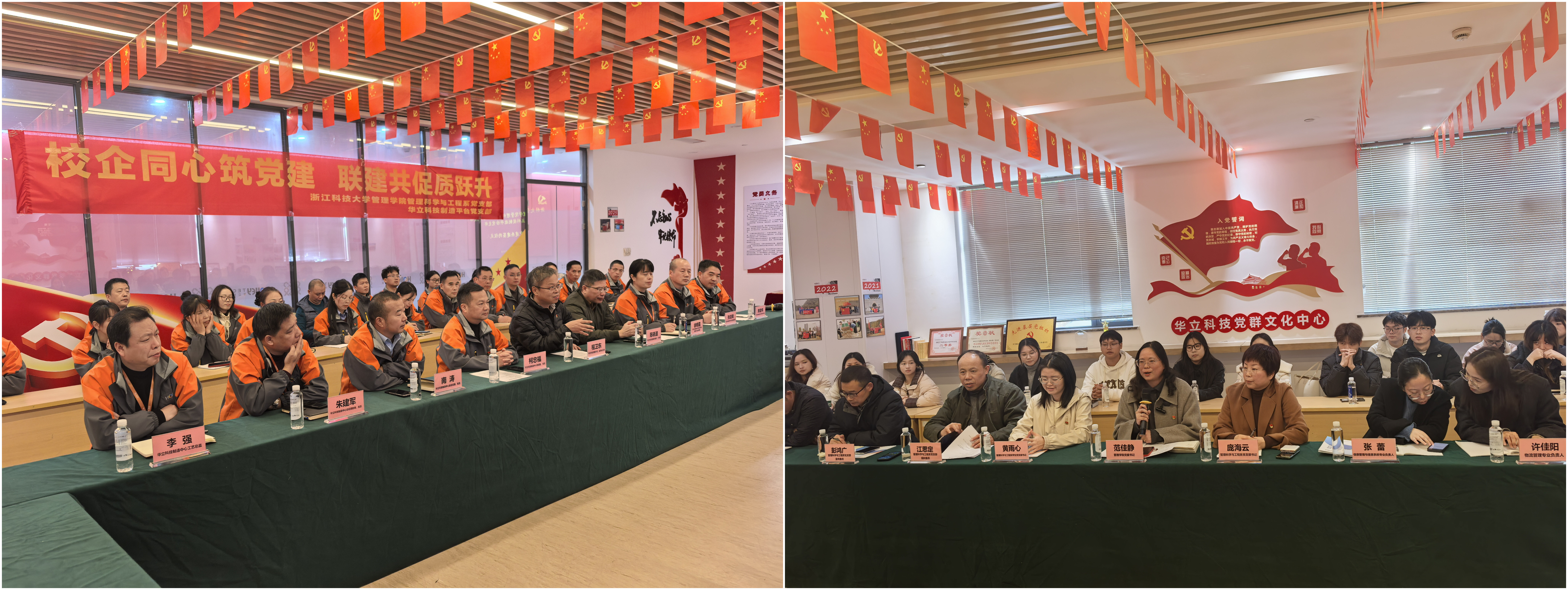 簽約前,雙方圍繞黨建與發(fā)展深入交流。華立科技分享了“圍繞經(jīng)建抓黨建,抓好黨建促經(jīng)建”的實(shí)踐思路,制造中心也介紹了青山湖生產(chǎn)基地的建設(shè)運(yùn)行概況;浙科大則聚焦黨建與人才培育的融合經(jīng)驗(yàn),雙方以黨建為紐帶,為產(chǎn)學(xué)研協(xié)同發(fā)展筑牢基礎(chǔ)。